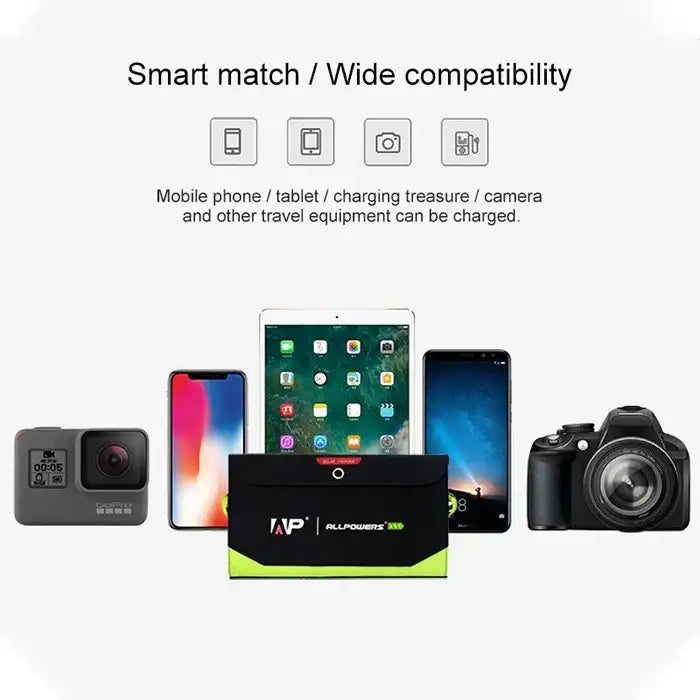 Upplev friheten med att ladda dina enheter var som helst med ALLPOWERS Solar Panel 10W 5V. Denna högkvalitativa solpanel är designad för att ge pålitlig ström när du är på språng, oavsett om du campar, vandrar eller bara är ute i naturen. Med sin kompakta och lätta design är denna ALLPOWERS Solar Panel 10W 5V en oumbärlig följeslagare för alla äventyr.