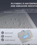 Utsidan är klädd i PU-läder (syntetiskt) som är trycktåligt, slitstarkt och stänksäkert. Det gör väskan lätt att torka av och mindre känslig för regnstänk, fuktig mark eller smutsiga ytor. Insidan kombinerar dubbellager Lycra-foder med stötdämpande padding, vilket ger mjuk kontakt mot känsliga ytor och effektiv kollisionsdämpning vid stötar. Resultatet blir en väska som tål att användas – ofta.