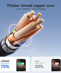 Den tjuriga, tennbelagda kopparkärnan minskar resistans, förbättrar laddningseffektiviteten och minimerar värmeutveckling – vilket skyddar både kabel och enhet.