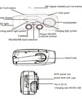 Du kan ladda enheten genom att veva manuellt, använda solpanelen, ladda via USB eller köra på det inbyggda batteriet.