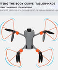 Propellerskydden är precis formade efter Mini 5 Pros kurvor och sitter stabilt utan att påverka propellrarnas rotation eller luftflöde.