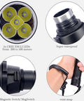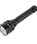 En dykficklampa med stabil prestanda är avgörande för säkerhet och sikt under vatten. Den här dykficklampan är byggd för att leverera stark belysning och hög tillförlitlighet även i utmanande miljöer. Den är utrustad med fem kraftfulla Cree XM-L2 LED-emitter som ger en imponerande ljusstyrka upp till 6800 lumen. Den fokuserade ljuskäglan ger djup penetration i mörka undervattensmiljöer, vilket gör den idealisk för dykning, undervattensinspektioner och nattdyk. Med IPX8-klassning är denna dykficklampa helt vattentät och klarar ett dykdjup på upp till 150 meter, vilket gör den lämplig även för mer avancerade dykare.