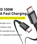 Med USB-C till USB-C och upp till 100W hanterar den extremt snabb laddning dataöverföring på 480Mbps.