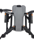 Stativet använder en snap-fit-montering som fästs på drönarens främre och bakre armar. Installationen är snabb, verktygsfri och kräver inga modifieringar av drönaren. Konstruktionen sitter tätt och stabilt så att fästet inte lossnar under flygning.