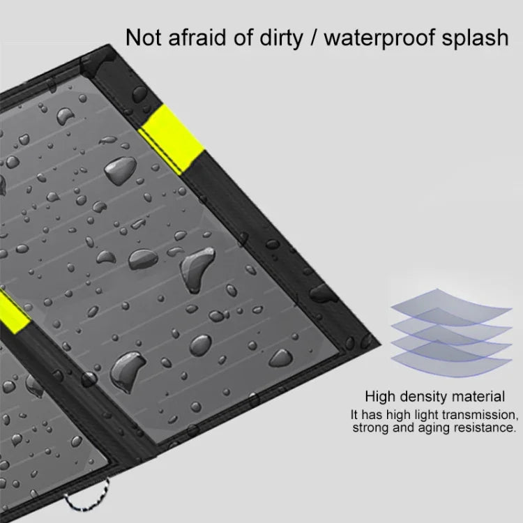 Den här solpanelen är byggd för att tåla naturens utmaningar. Den har ett PET-laminat av industriell kvalitet och är infattad i slitstark polyesterduk som skyddar mot fukt, damm, repor och starkt solljus.