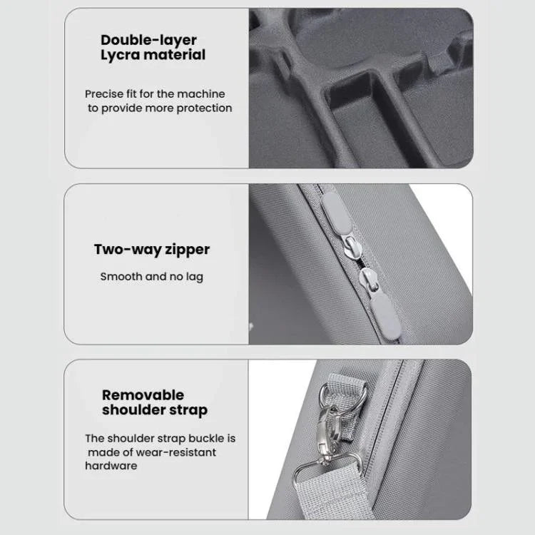 Den här exklusiva DJI Mini 5 Pro-väskan ger dig två smarta packalternativ: Standard när du vill resa lätt och Combo när du behöver laddhubb, filter och extra batterier. PU-utsidan är stänkskyddad och slitstark, medan den sömlöst formgjutna Lycra-insidan med dubbellagers dämpning låser fast utrustningen och isolerar yttre tryck. Med avtagbar axelrem, meshficka i locket och en formsäker layout får du ett skydd som är lika praktiskt i vardagen som på resa. Standard (29,2 × 8,5 × 21 cm, 550 g) och Combo (35,5 × 9,1 × 24,6 cm, 761 g) – välj den version som matchar ditt uppdrag och flyg med sinnesro.