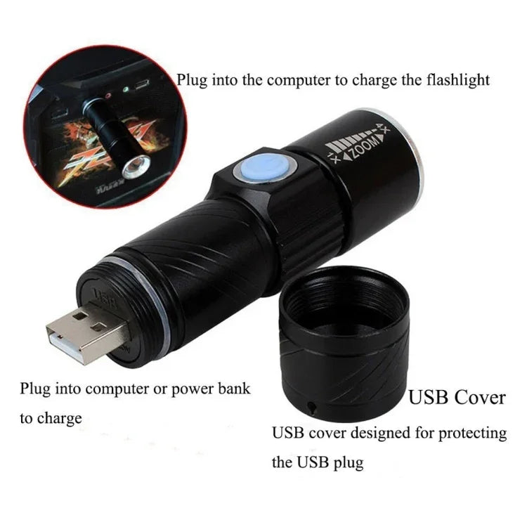 Cree Q5 LED Ficklampa med Zoom – 3 Ljuslägen och 180LM – Kompakt 18650-modell