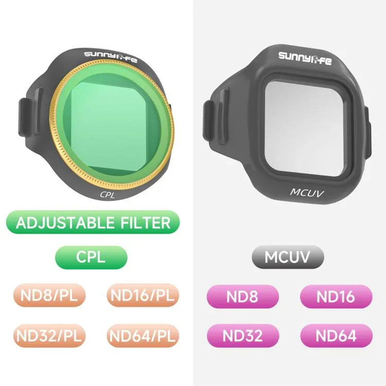 Sunnylife erbjuder flera typer av filter som täcker olika fotograferingsbehov. Varje variant är noggrant utformad för att ge optimal effekt beroende på miljö och ljusförhållande.