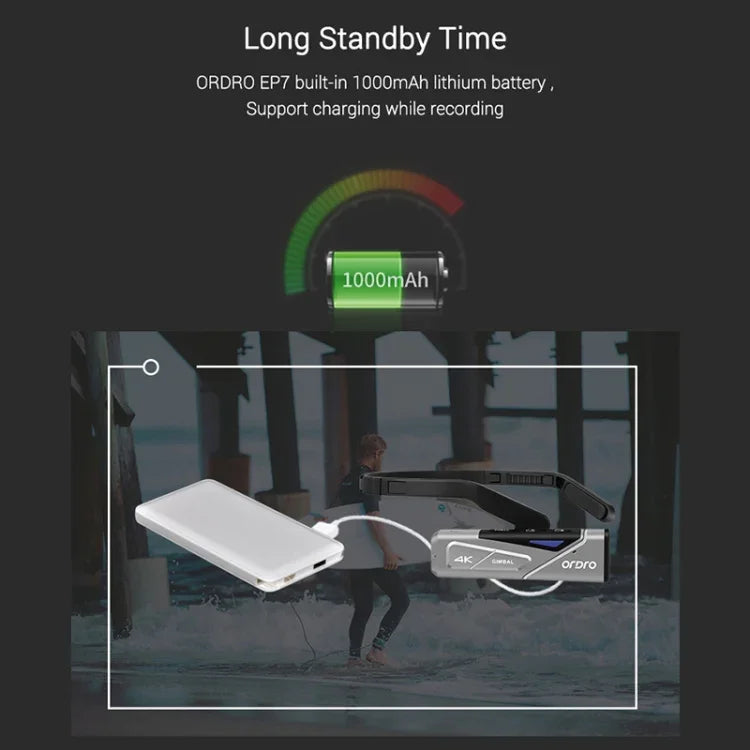 ORDRO EP7 är en avancerad headsetkamera som kombinerar bärbarhet, bildkvalitet och smidig användning. Den spelar in i 4K, fokuserar automatiskt och fångar precis det du ser – utan att du behöver hålla i något.