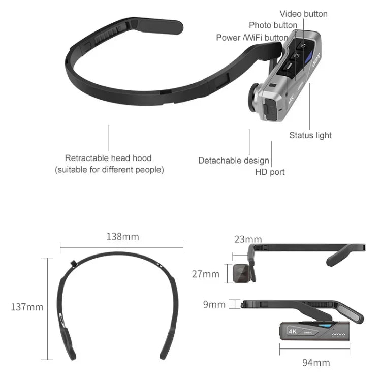 ORDRO EP7 väger endast 70 gram, vilket gör den lätt att bära även under längre perioder. Huvudfästet är tillverkat i mjukt silikon med justerbar passform för att sitta stabilt oavsett aktivitet. Kamerahuset är tillverkat i slitstarkt aluminium och är motståndskraftigt mot damm och lätt stänk.