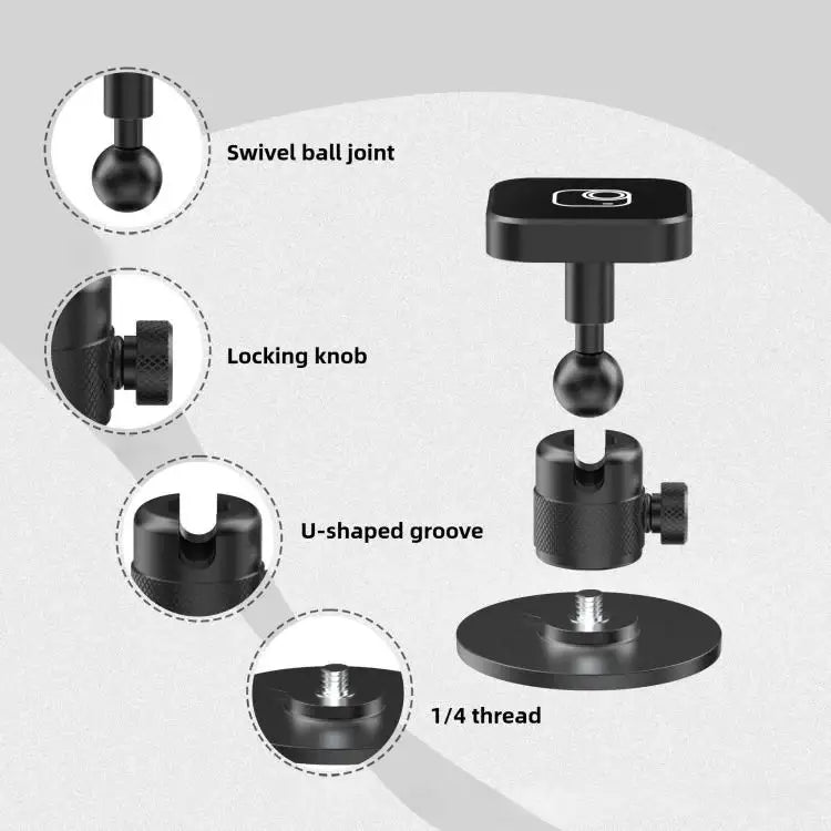 Detta roterande kulledsfäste är designat för maximal anpassningsförmåga. Den 360-graders rotationen och den justerbara vinkeln gör det enkelt att hitta den perfekta positionen för din utrustning. Oavsett om du behöver ett magnetiskt kulledsfäste för en actionkamera, en smartphone eller en mindre systemkamera, levererar denna lösning stabil prestanda. Dessutom är det ett utmärkt magnetiskt bordsfäste för att skapa dynamiska vinklar på skrivbordet eller andra plana ytor.
