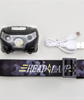 140LM Outdoor Mini USB-laddningsbar pannlampa med rörelsesensor