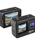 4K Actionkamera med WiFi, 2.4G-fjärr & dubbla skärmar