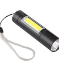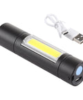 A1 USB-uppladdningsbar vattentät ficklampa med fast fokus, XPE + COB-ljus, 3 ljuslägen och förvaringslåda