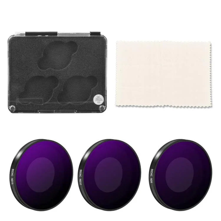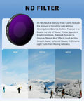 ND-filtren levereras i flera varianter (ND8, ND16, ND32) så att du kan välja rätt filter beroende på ljusförhållanden.