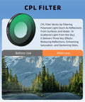 Justerbart CPL-filter som eliminerar reflektioner och förstärker färger.