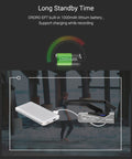 Kameran har ett inbyggt litiumbatteri med upp till 120 minuters inspelningstid per laddning. Den laddas via USB-C och kan även användas medan den laddas, vilket gör den perfekt för längre pass eller stationär användning.