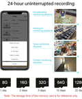 Videofiler sparas på microSD-kort upp till 256 GB, vilket ger gott om utrymme för långa inspelningar i 4K.