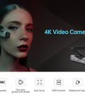 Kameran är utrustad med en högkvalitativ Sony CMOS-sensor som levererar skarp 4K-upplösning (3840 × 2160 @ 30 fps) och levande färger. Den avancerade autofokusen justerar skärpan automatiskt i realtid, vilket gör att du alltid får tydliga bilder – även när du rör dig.